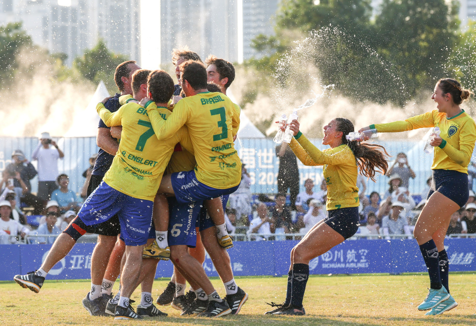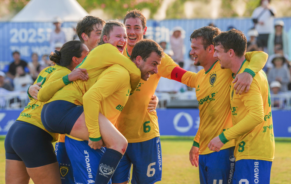 当日,在2025年成都世运会浮士德球男子决赛金牌赛中,巴西队战胜德国队,获得冠军。