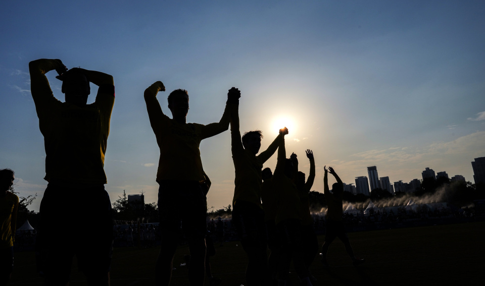 8月13日,巴西队在赛后庆祝夺冠。新华社记者 陈诚 摄